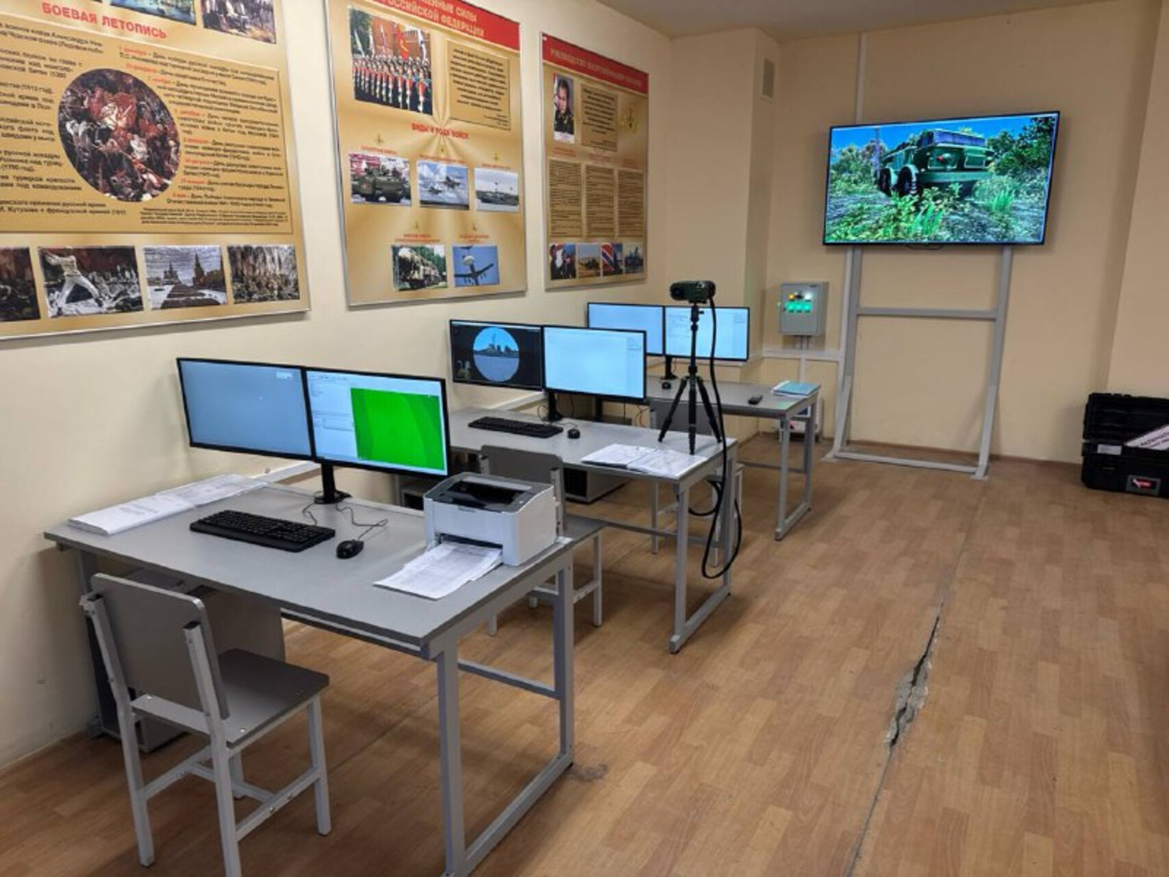 - Программно-аппаратный имитатор лазерного прибора разведки (ЛПР-3) на основе гиростабилизированной платформы, позволяющей определяя изменение положение корпуса имитатора в пространстве, изменять отображение демонстрируемой 3D-модели участка местности в окулярах имитатора.